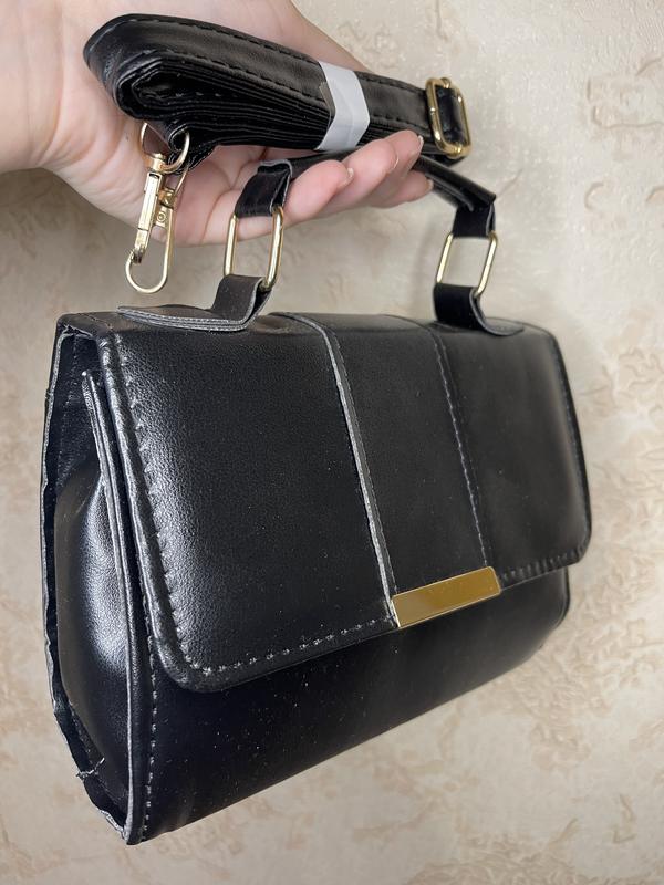 Невелика чорна сумка на ручці, в комплекті є ланцюжок який регулюється, два велики відділення і одне на змійкою.