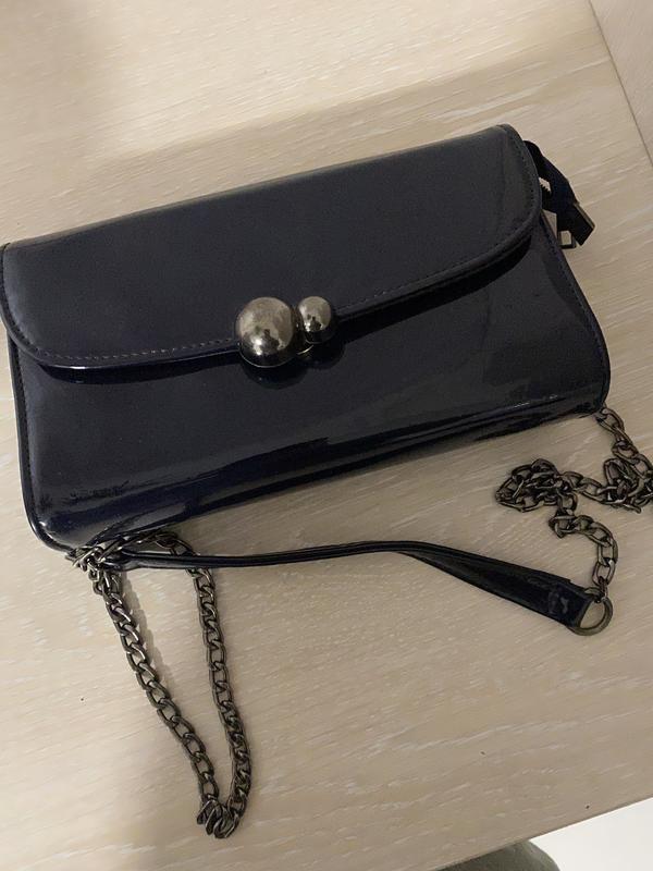 Синього кольору лакована на закльопці із довгим ремінцем з цепочкою