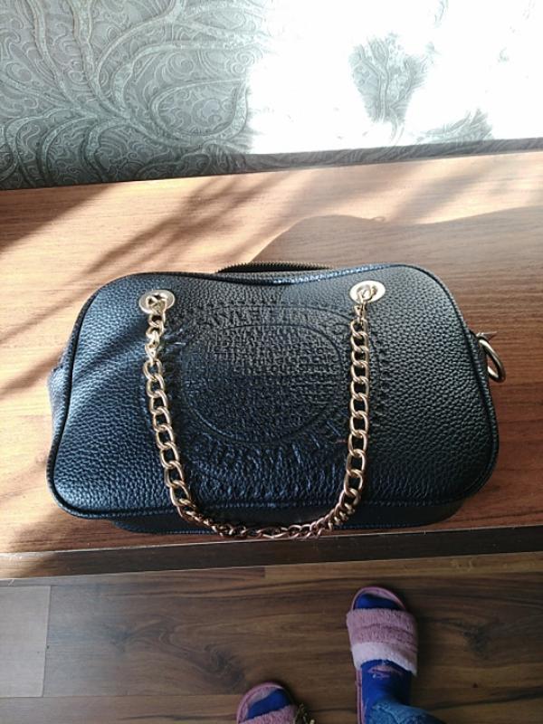 Маленькая сумочка, ширина 25см, высота 17см дно 9см,замки все работают, цепочка 45см