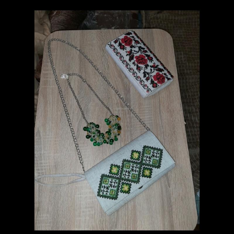 клатч з тканини, схожої на льон, ручна робота української майстерні інни царик, купували дорого для подарунку іноземцям