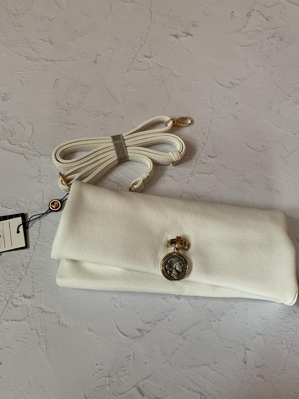 Сумка клатч, білого кольору. Довгий ремінь. Довжина 28, ширина 10, у відкритому вигляді 23,5 см