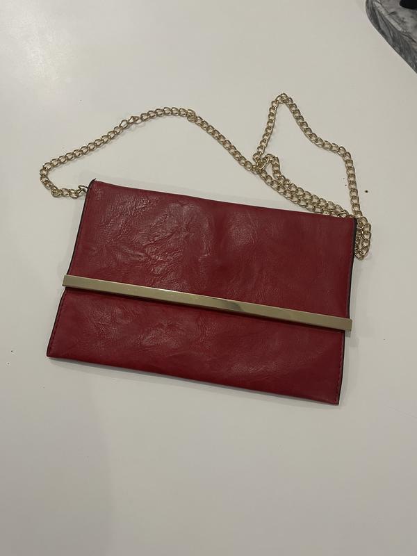 Клатч із штучної шкіри із золотим ланцюжком. Не був у використанні. Розміри є на фото, сумка без дефектів.