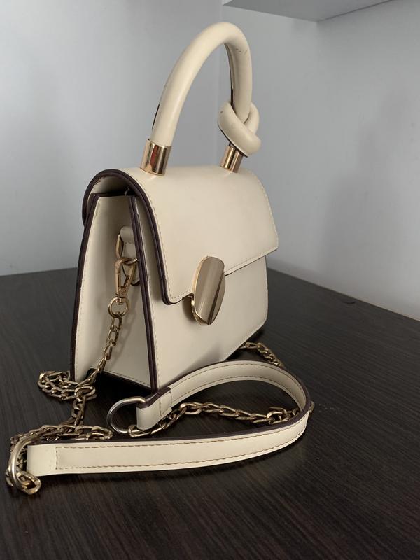 Файна молочна сумочка, еко шкіра, є довгий ланцюжок Розміри на фото Носилася мало, металеві деталі не потерті .