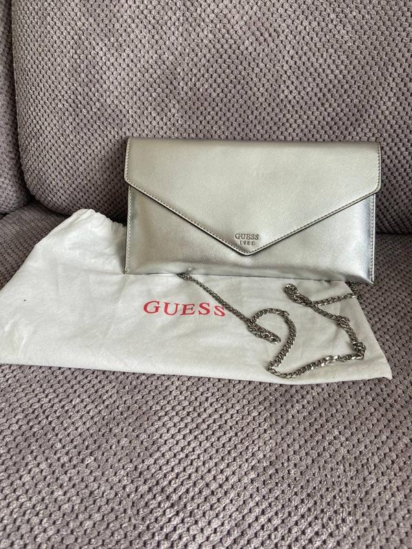 Жіноча Сумочка/Клатч GUESS. Стан нової речі. Використовувалась 2/3 рази. Купували в магазині DUTY FREE. 100% Оригінал. Срібний колір з плотним срібним ланцюжком. Заміри: Ширина 29 см; Висота 17 см.