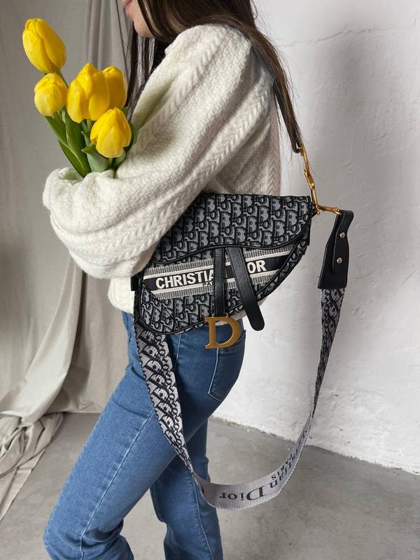 Christian Dior Saddle Silver Monogram Арт: 0078 1350 грн Розмір: 25 х 21 х 5 см Матеріал: текстиль, еко шкіра Опис: Люкс якість! Сумка виготовлена з текстилю з брендовою вишивкою та зі вставками еко шкіри. Всередині одне відділення, є невелика кишенька на блискавці. Підкладка сумки - приємний на дотик текстиль. Ручка з еко шкіри, кріпиться до сумки на літерах C та D. Є додатковий текстильний широкий ремінець з принтом назви бренду, довжина 108 см. Безкоштовновний комплект: брендова коробка + пакувальний папір. Платний комплект +160 грн: брендовий пакет, пильовик та набір документів.