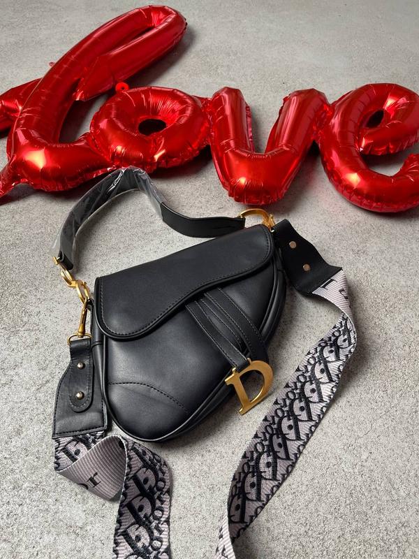 Christian Dior Saddle Black Арт: 0079 1350 грн Розмір: 25 х 21 х 5 см Матеріал: еко шкіра, текстиль Опис: Люкс якість! Сумка виготовлена з еко шкіри. Всередині одне відділення, є невелика кишенька на блискавці. Підкладка сумки - приємний на дотик текстиль. Ручка з еко шкіри, кріпиться до сумки на літерах C та D. Є додатковий текстильний широкий ремінець з принтом назви бренду, довжина 108 см. Безкоштовновний комплект: брендова коробка + пакувальний папір. Платний комплект +160 грн: брендовий пакет, пильовик та набір документів.
