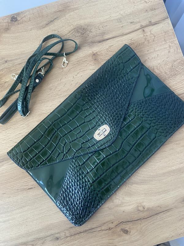 Сумка клатч, лакована під зміїну шкіру. Дуже сучасна та стильна. Нюанс на застібкі, на фото видно, при носці непомітно