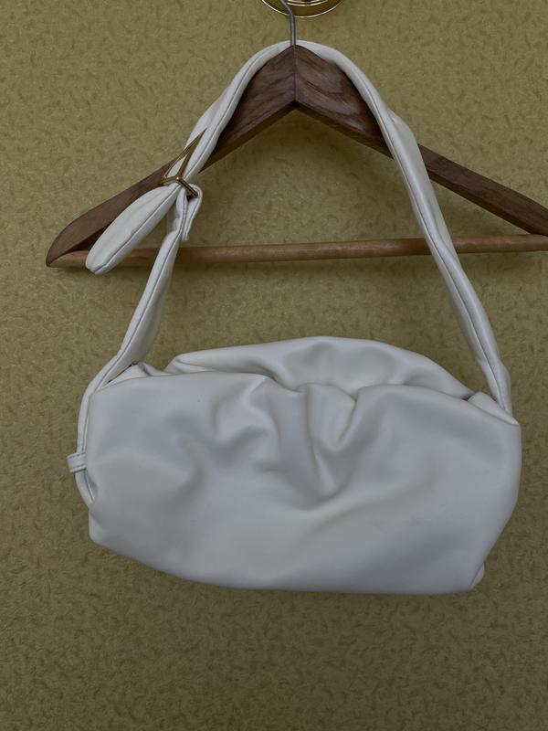 Білосніжна, вмістка, мʼякесенька сумочка з золотою фурнітурою Розмір: ширина 33см, висота з ручкою 39 (ручку можна зробити коротше чи трішки довше)