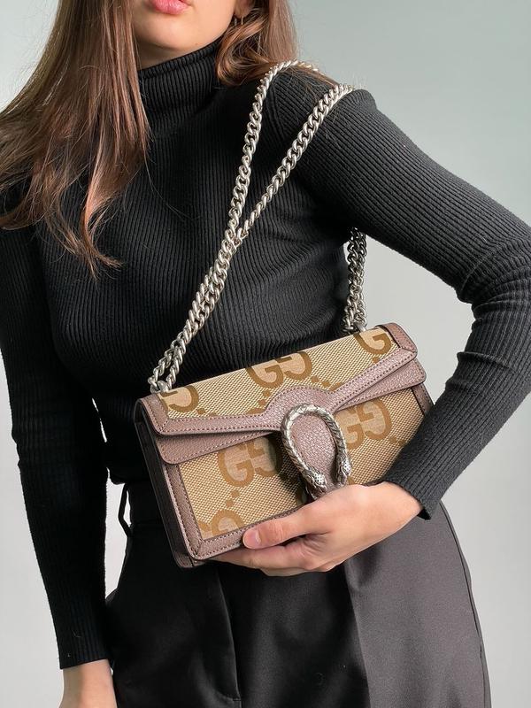 👜 Gucci Dionysus Brown Small Shoulder Bag (Арт: 99121) 📐 Размер: 25 х 14 х 5.5 см 🧵 Материал: Кожа, Текстиль 🔎 Описание: Сумка изготовлена из плотного текстиля с фирменной канвой и кожей. Внутри два отделения, одно из которых дополнительно замаскировано. Подкладка из плотного и качественного текстиля. Открывается главное отделение за счет нажатия левее от змеи. Качественная фурнитура, металлическая и брендированная. Серебристая цепочка для ношения в руке и через плечо. Комплектуется в брендированной коробке на магнитах (она дополнительно упаковывается в защитную коробку), сумка упаковывается в пыльник, есть буклетики и карточки.