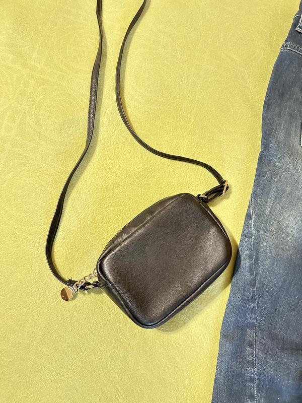 Міні сумочка чорного кольору з золотою блискавкою і ремінцем через плече