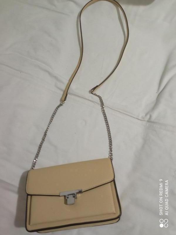 Очень стильная классная сумка-клатч с длиной ручкой. Светлобежевого, даже молочного цвета. На два кармана, вместительная для такого размера, ручка наполовину цепочка, что позволяет ее мягко сложить в сумку и взять ее в руку для вечернего наряда. Высота - 14 см, ширина - 22 см, объем 7 см, ручка 125 см. Наложенным платежом не отправляю.