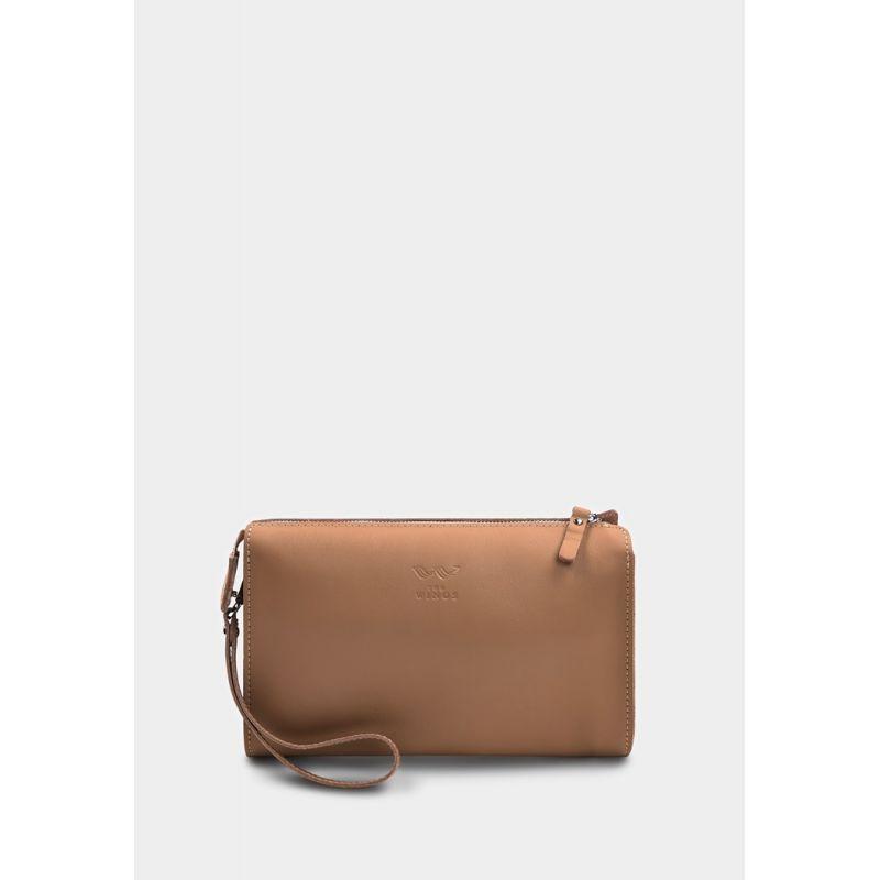 Жіночий клатч з карамельної шкіри з змійкою