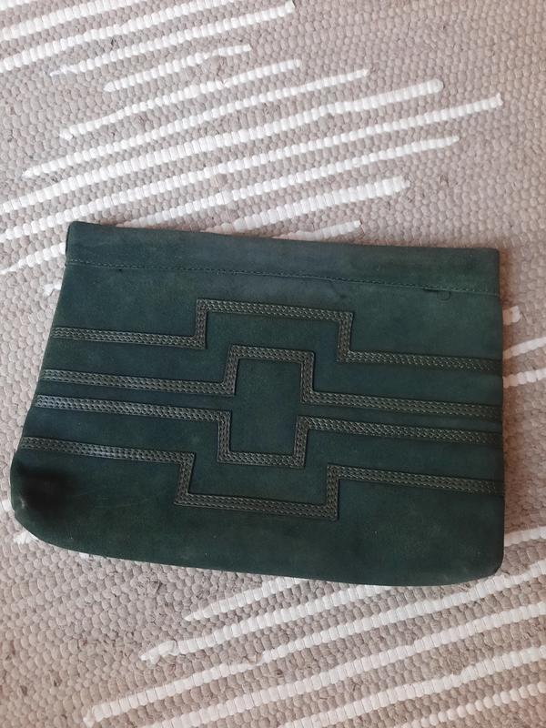 всередені хлопковий підклад, дві внутрішні кишені,клатч застібається на магніт, у дуже гарному стані, без дефектів розмір 23×32 см