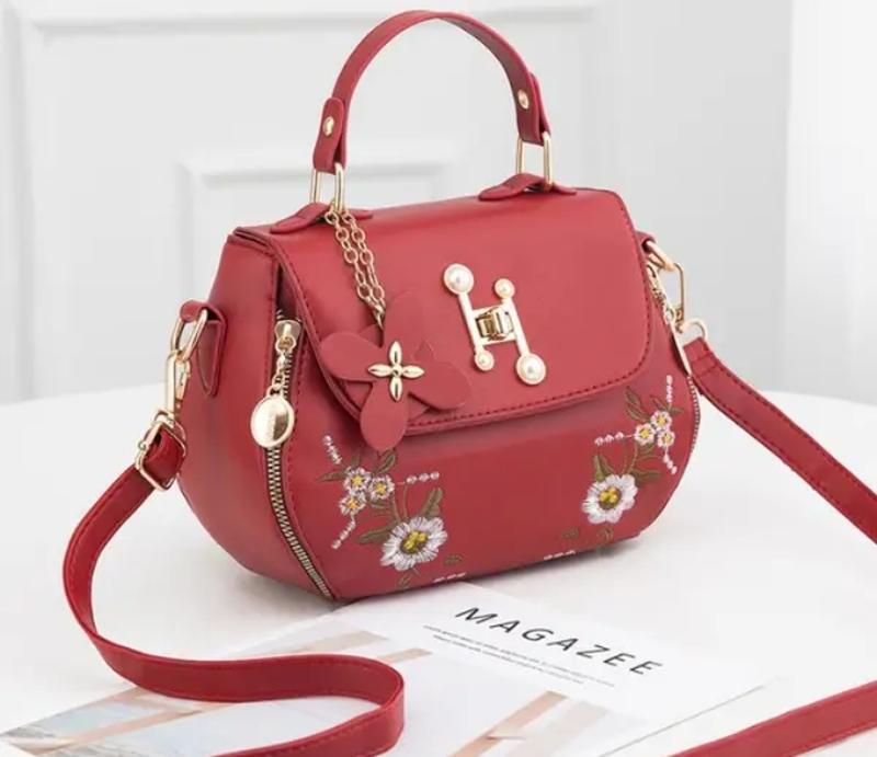 Жіноча міні сумочка з вишивкою, маленька сумка з квіточками Характеристики: Матеріал: якісна та щільна екошкіра (добре тримає форму); Малюнок: вишивка; Плечовий ремінь на карабінах (максимальна довжина 120 см); Довжина: 24 см; Ширина на основі: 10 см; Висота: 17 см;