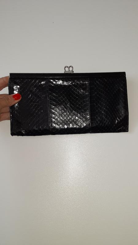 клатч з зміїним принтом, чорного кольору