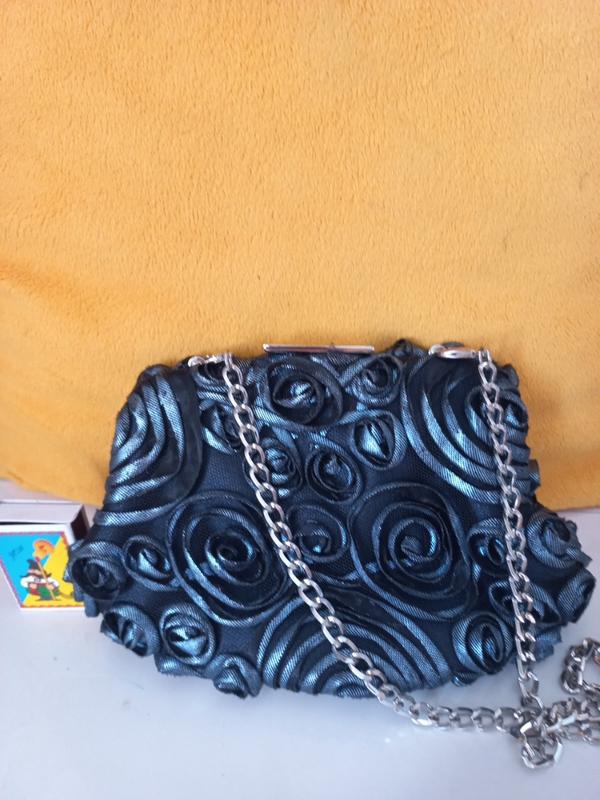 Маленькая красивая театральная сумочка. Лежала в кладовке очень долго. Сверху, на замочке был приклеен каменец, потерялся. Можно приклеить другой.