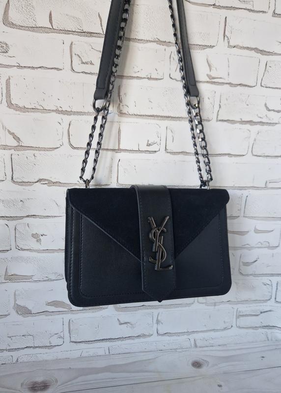 Дуже стильна сумочка Висота 15 см Ширина 23 см Дно 7 см Довгий ремінець можна носити як на всю довжину, так і на подвійну. Матеріал-високоякісна еко шкіра і замша натуральна Усередині два відділення і центральне відділення на блискавці. Спереду знаходиться відкрита кишеня. Клапан закривається на кнопку-магніт.