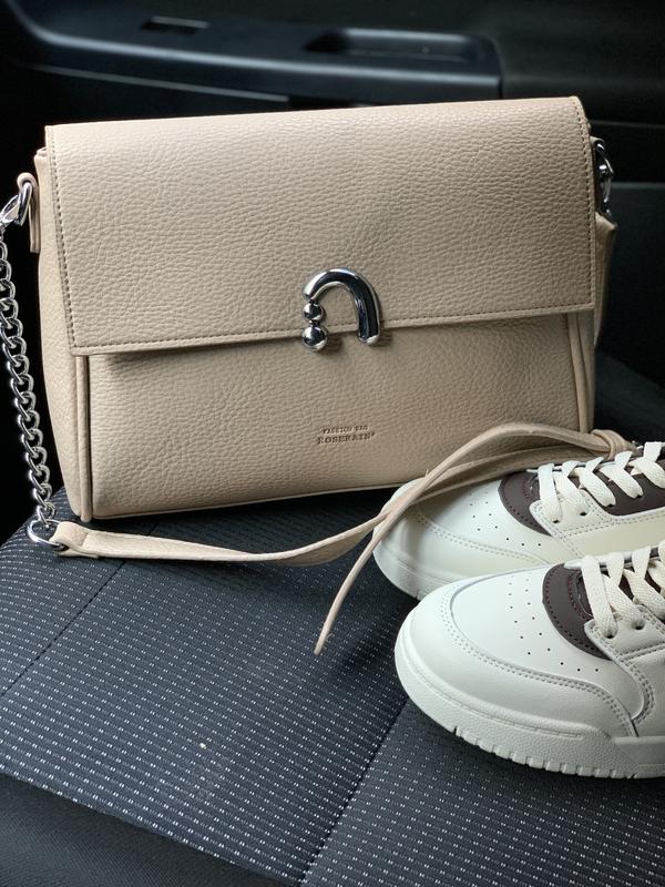 Сумка клатч бежева жіноча зручна на довгому ременці