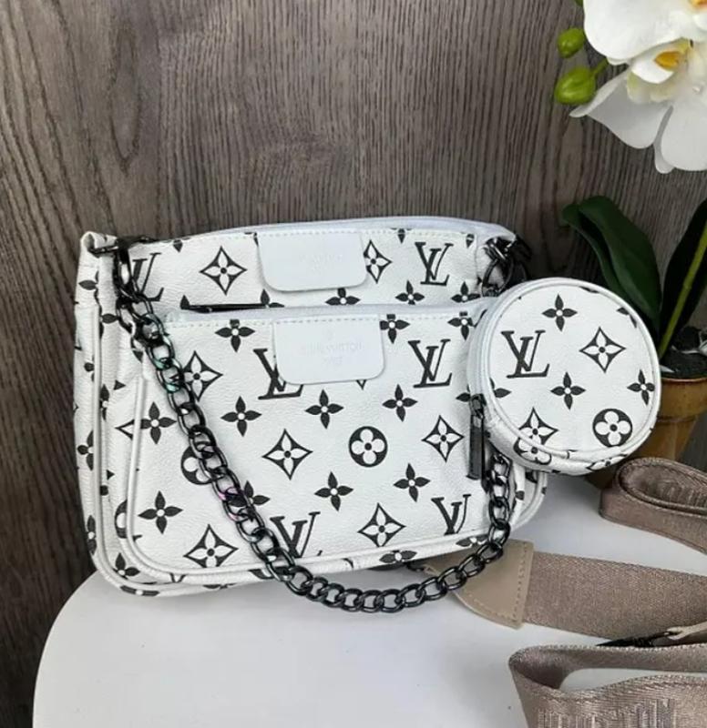 Женская сумка мульти клатч 3 в 1 Характеристики Материал: качественная экокожа; Размеры большой сумочки: 22х17х4 см; Размеры маленькой сумочки: 18х11х3 см; Диаметр круглой сумочки-ключицы: 9 см; Плечевой ремень – тканевый на карабинах; Качественная металлическая фурнитура