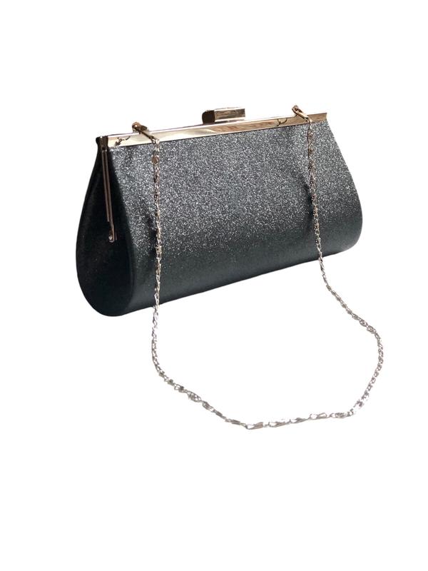 Стильна чорна сумка клатч з блискітками та з ручкою - ланцюгом