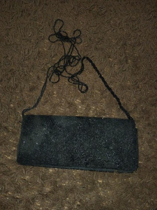 сумка клатч чорного кольору,оброблена чорним бісером ,в гарному стані