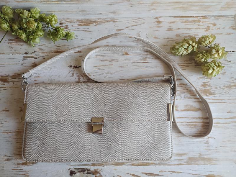 Сірого кольору сумка кросбоді - клатч в гарному стані. Розміри :15× 28см, три відділення + маленька кишенька.