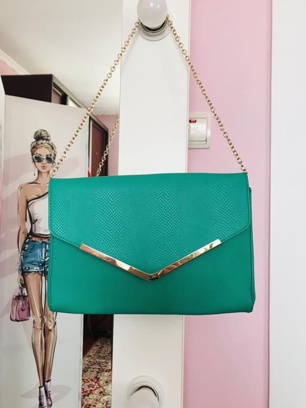 Яскрава сумка-клатч на ланцюжку бренду Primark в відмінному стані. Дуже красивий колір. Довжина - 26см, висота - 18,5см.