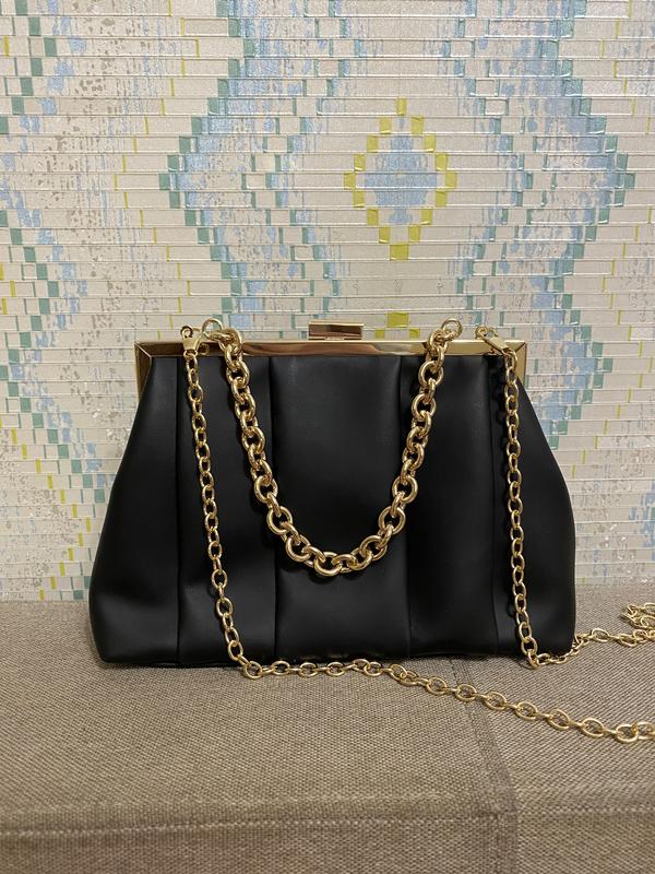 Дужеее гарна 🔥. Сумочка має такі розміри: Висота: 15 см Довжина: 21 см Ширина: 7,5 см Ручка коротка: 12 см (у висоту, довжина - +/- 24 см) Довга ручка: 52 см (висота) Матеріал приємний на дотик, клатч середнього розміру, має карманчик усередині. Застібується надійно 😉