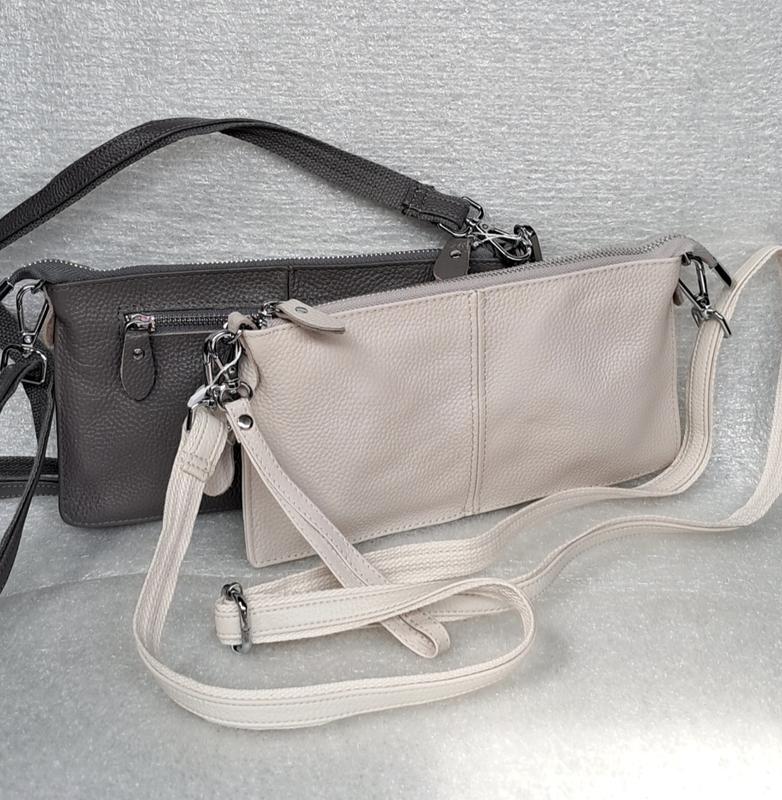 Клатч шкіряний.Розміри 24×13. Довдина ручки 144см.Є беж ,сірий.