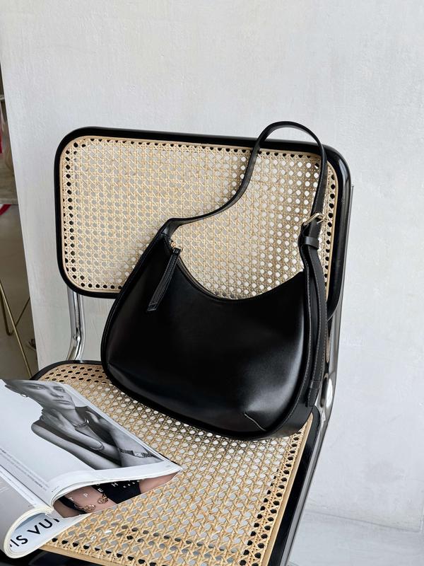 Клатч-багет напівкруглої форми чорного кольору. Матеріал - еко-шкіра, тримає форму. Всередині відділення, підкладка, кишені закриті та відкриті. Застібається блискавкою. Довжина ремінця регулюється.Виробництво - Україна. Розмір: Довжина 34 см Ширина 8 см Висота 23 см