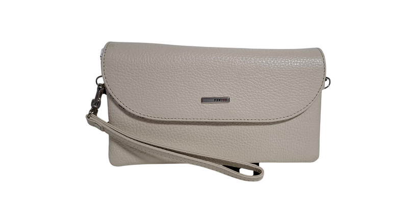 Жіночий клатч KARYA із натуральної шкіри. Розмір 19х11х3 З кистьовим та плечовим ремінцями,має всередині 4 відділи для карток, позаду розташована горизонтальна монетниця на блискавці.