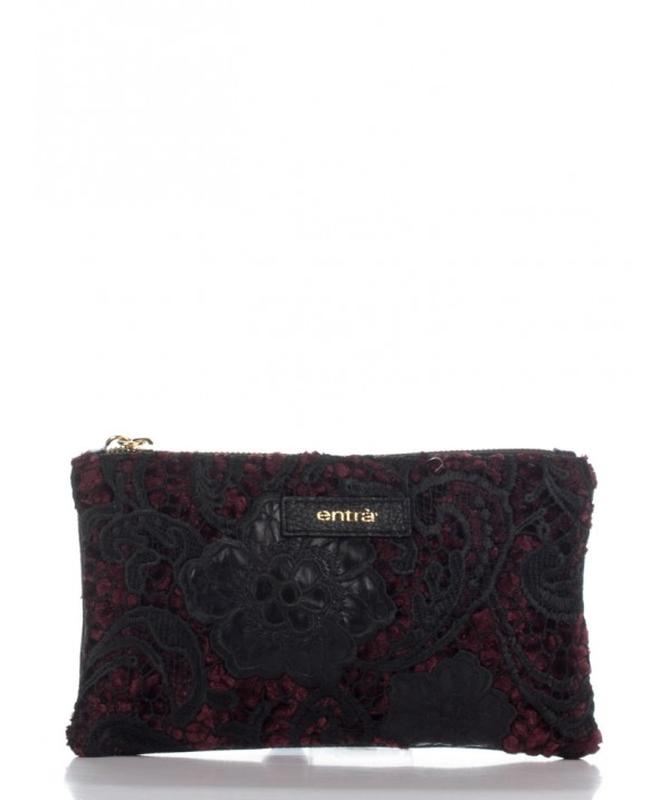 Клатч на блискавці зі зйомною ручкою (36 см). Натуральна шкіра+текстиль. В наявності синя і бордова сумки.