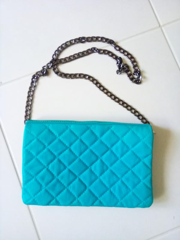 Новая сумочка бирюзового цвета. В комплекте цепочка и дополнительный короткий ремешок. Четыре отделения. Размер в сложенном виде 24.5 х 16 см. Эко кожа высокого качества.
