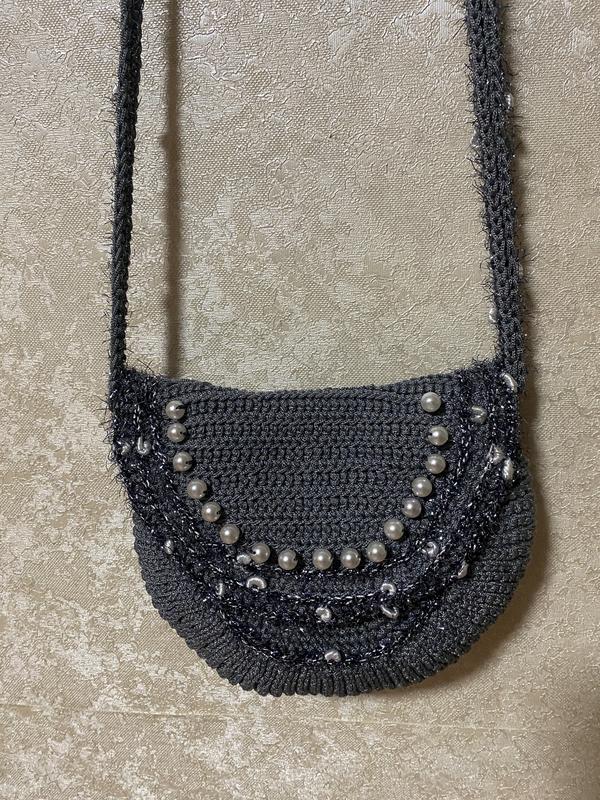 Сумка вʼязана з поліефірного шнура на підкладці. Ширина 23см. Висота 21см.