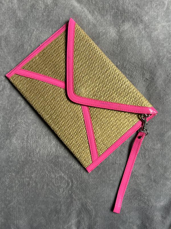 Клатч Calliope 30 x 21см На рожевих лакованих смужках є чорні рисочки У реальному житті майже непомітно, але зазначаю для прозорості