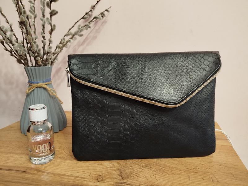 Клатч Atmosphere черного цвета. Кожзаменитель фактура под змею