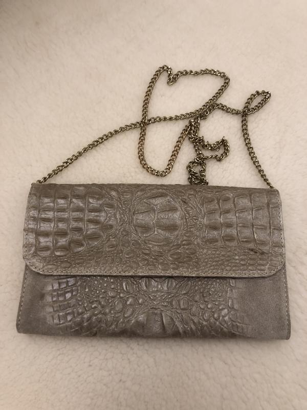 Клатч бежевого цвета, кожаный на цепочке, новый