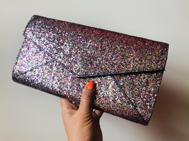 Шикартный клатч! Переливається всіма кольорами веселки =) - сріблястим, золотистим, малиновим, червоним, зеленим, синім =) Яскравий акцент! Підійде під вечірній образ, також шикарно буде виглядати з денімом! Розмір: 26 см*14 див. Стан нової речі! Фото не передають в повній мірі всю яскравість і красу цієї речі...
