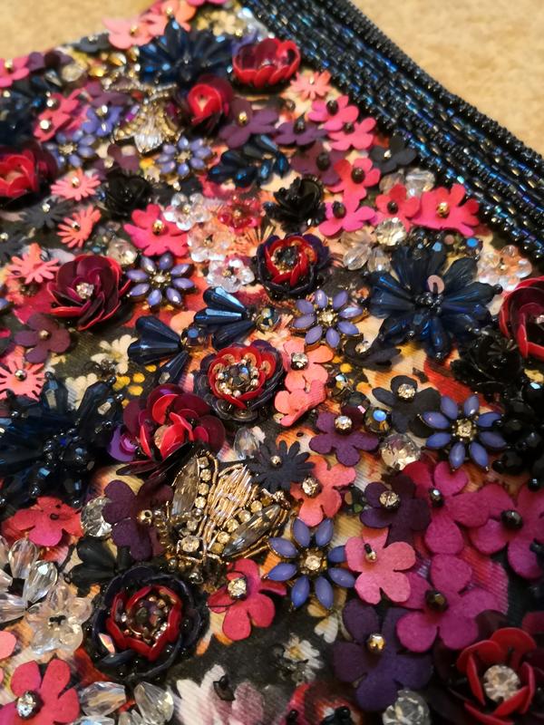 Шикарний, нетиповий, оригінальний тканинний клатч у квіти з бісеру. Тивні один раз, можна сказати новий