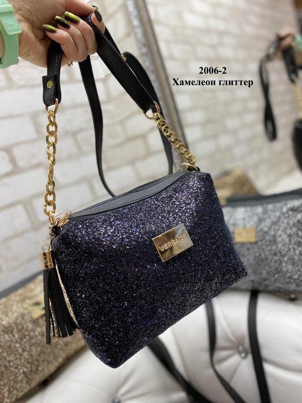 Код 2006-2. Гліттер/кожзам . 3️⃣8️⃣0️⃣грн. 24*15*8 див Два відділення,кожне на блискавці. Всередині кишеня на блискавці. На звороті кишеня на блискавці. Максимальна довжина ремінця 135 див.