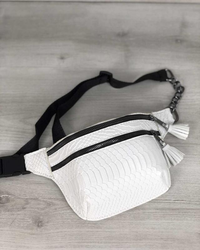 🔥 Стильна сумочка на пояс Елен біла рептилія 🔥 🔺 Арт. 61203-489 ▪ Матеріал: еко-шкіра ▪ Колір: білий ▪ Розміри: маленький ▪ Жорсткість: середня ▪ Тип застібки: блискавка ▪ Відділення: 2 відділення ▪ Плечовий ремінь: немає ▪ Довжина: 28 див. ▪ Ширина: 7 див. ▪ Висота: 14 див. ▪ У наявності!