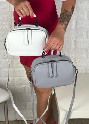Кросс - боди из натуральной мягкой кожи Размер : 15/22 см Одно отделение на молнии, есть внутренние карманы Цвета : белый и серый Фурнитура никель 1420 грн