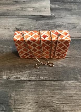 Стильный клатч Zara из дерева и кости с цепочкой для ношения на плече.Внизу имеется небольшой дефект в виде скола поверхности.
