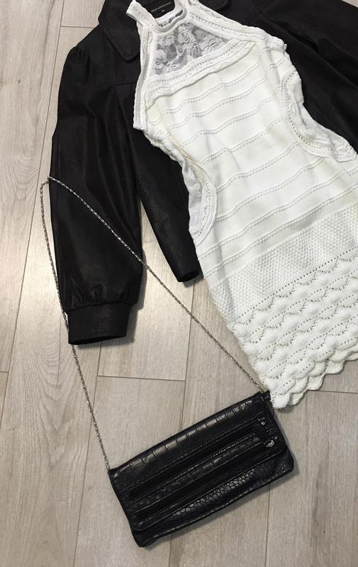 На тілі немає)виміри на фото), застібається на дві магнітні заклепки,загинається,зверху дві кишені на блискавках)ручка ланцюгова) «не шкіра» clutch — схопити) — маленька елегантна сумочка-конверт. У клатч може бути маленька ручка, не ремінець, але зазвичай його носять під пахвою або обхопивши долонею. Виготовляється з високоякісних матеріалів (наприклад, крокодилячої чи зміїної шкіри), прикрашений золотом, перлами, стразами і пір'ям. Якщо цей день тобі належить провести в русі, поєднання чорної водолазки, з коротким рукавом і чорного шкіряного клатча дозволить створити функціональний цибулю в стилі casual. Темно-синій светр з круглим вирізом і шкіряний чорний клатч — чудовий лук для активного вихідного дня. Чорні замшеві туфлі — ідеальний вибір, щоб доповнити цибулю. Таке лаконічне і практичне поєднання базових речей, як жовте плаття-міді з квітковим принтом і шкіряний чорний клатч, сподобається дівчатам, які люблять проводити дні в постійному русі. Що стосується взуття, коричневі шкіряні ботильйони — найбільш виграшний варіант.