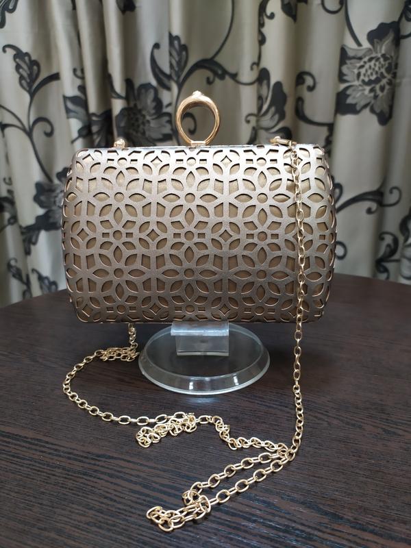 Клатч з кільцем на палець і ланцюжком. Розмір 20*13 див. бронзовий Колір.