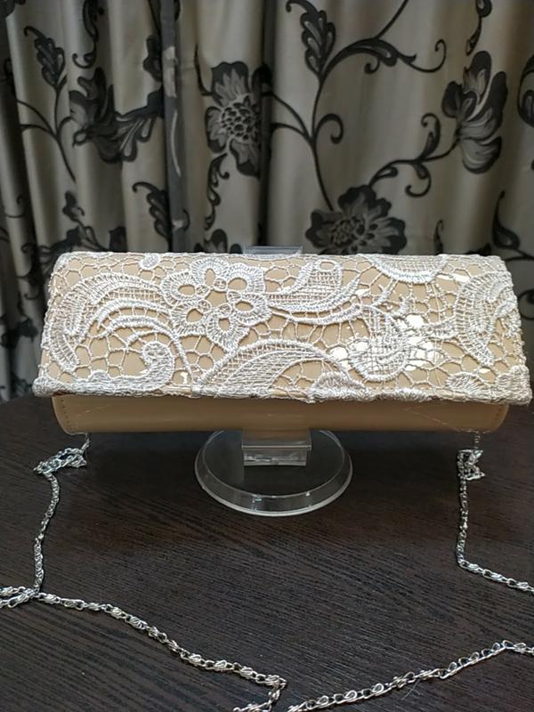 клатч лаковий з гіпюром на ланцюжку, розмір 24*12,5 див.