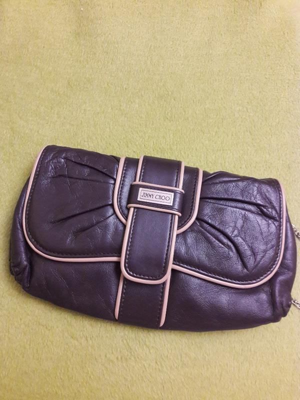 Кожаная сумочка - клатч темно - коричневого цвета 25× 15см. Длинная ручка - цепочка.