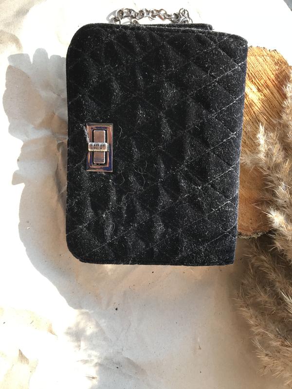 Сумка за розміром як клатч , чорна , на ланцюжку і з замочком , оксамит. Підійде як на повсякденне життя так і на вечір