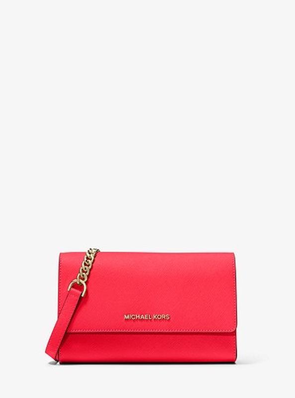 Яскрава сумка-клатч від Michael Kors. Виконана з шкіри сафьяно, в комплекті довгий плечовий ремінь і коротка ручка для використання в якості клатча. Всередині 1 велике відділення, 1 відділення на блискавці і кишеньки для карт. Знаходиться в Києві, відправлю Новою поштою після оплати.