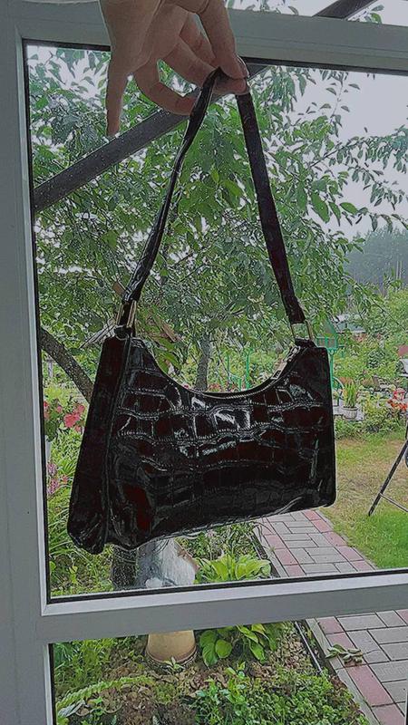 Сумочка крокодил сумка клаптя багет крокодилова крокодиловий ретро чорна чорний рюлак лако...